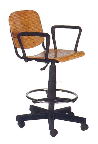 Ipari forgószék, műbőr vagy fa ülő- és hátfelülettel.
