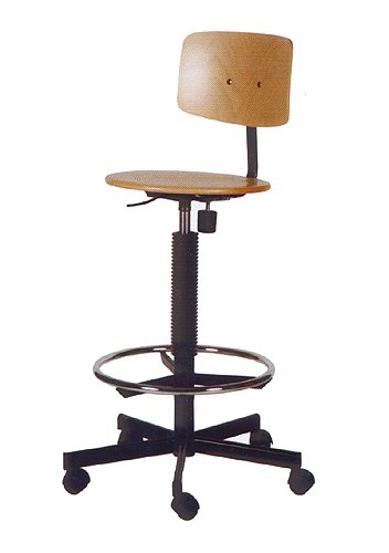 Ipari forgószék, fa ülo- és hátfelülettel, háttámla magasság és távolság állítását lehetové tevo mechanikával .