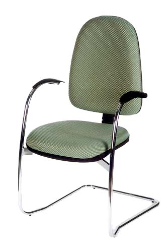 Karfás tárgyalószék, a karfa muanyag rátéttel ellátva, A háttámla magassága, távolsága és dolésszöge állítható. Csúszótalpakkal ellátott krómozott acélcso szánkótalppal.