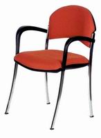 Tárgyalószék muanyag borítású karfával, króm lábazattal és csúszásgátló talpakkal.