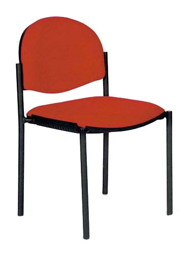Tárgyaló szék muanyag borítású karfával, szövetborítású ülés aljzattal, fekete acél lábazattal és csúszásgátló talpakkal.