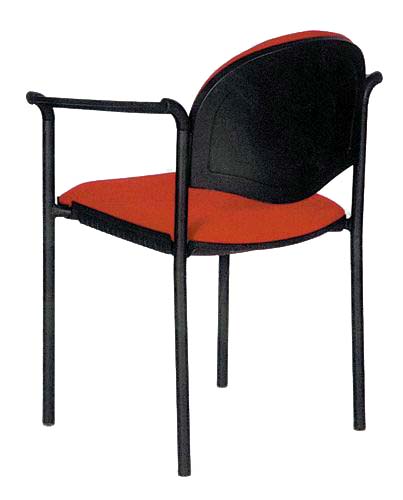 Tárgyaló szék muanyag borítású karfával, teljes burkolattal, fekete acél lábazattal és csúszásgátló talpakkal. |